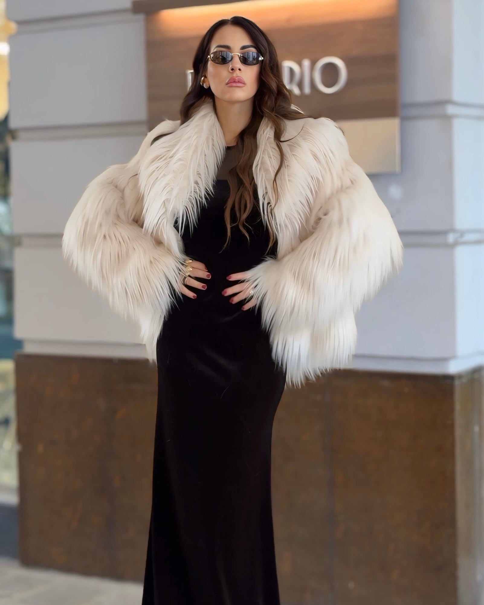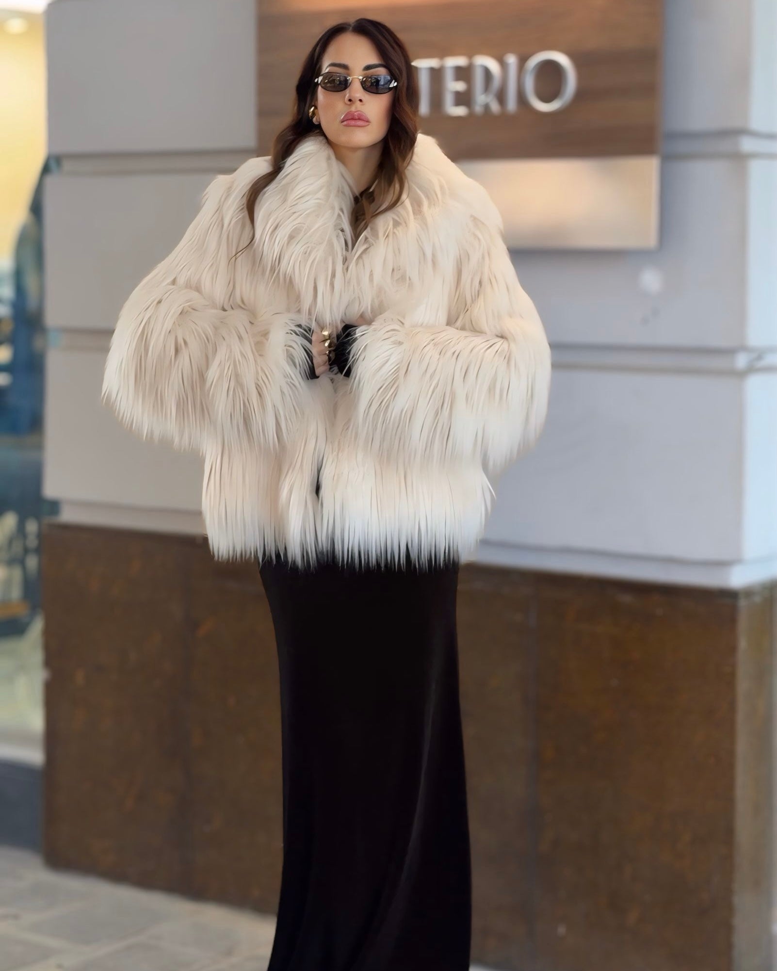 Ecopelliccia panna pelo lungo chiusura con ganci